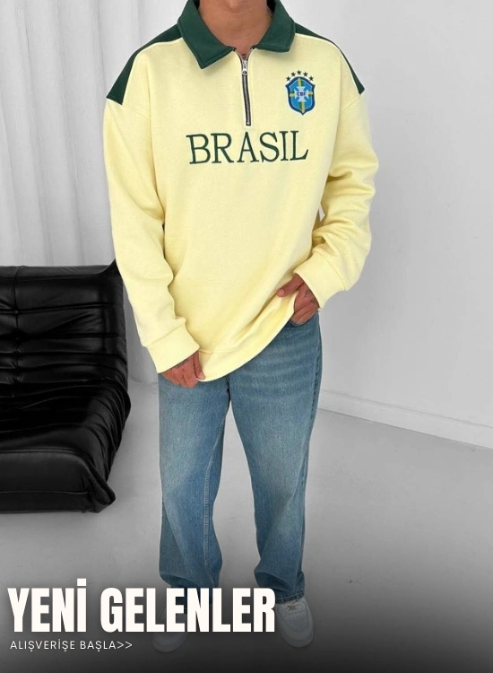 Oversize Taraftar Unisex Sweatshirt Sarı-Kırmızı