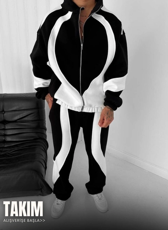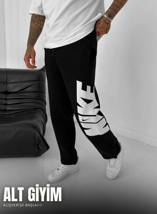 Nakışlı Şardonlu Unisex Baggy Eşofman Siyah